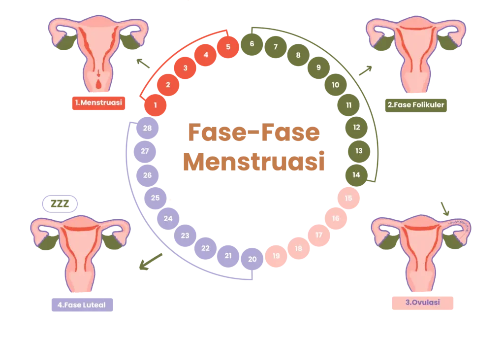 - Fase Menstruasi: Dimulai dengan perdarahan (hari 1–7).